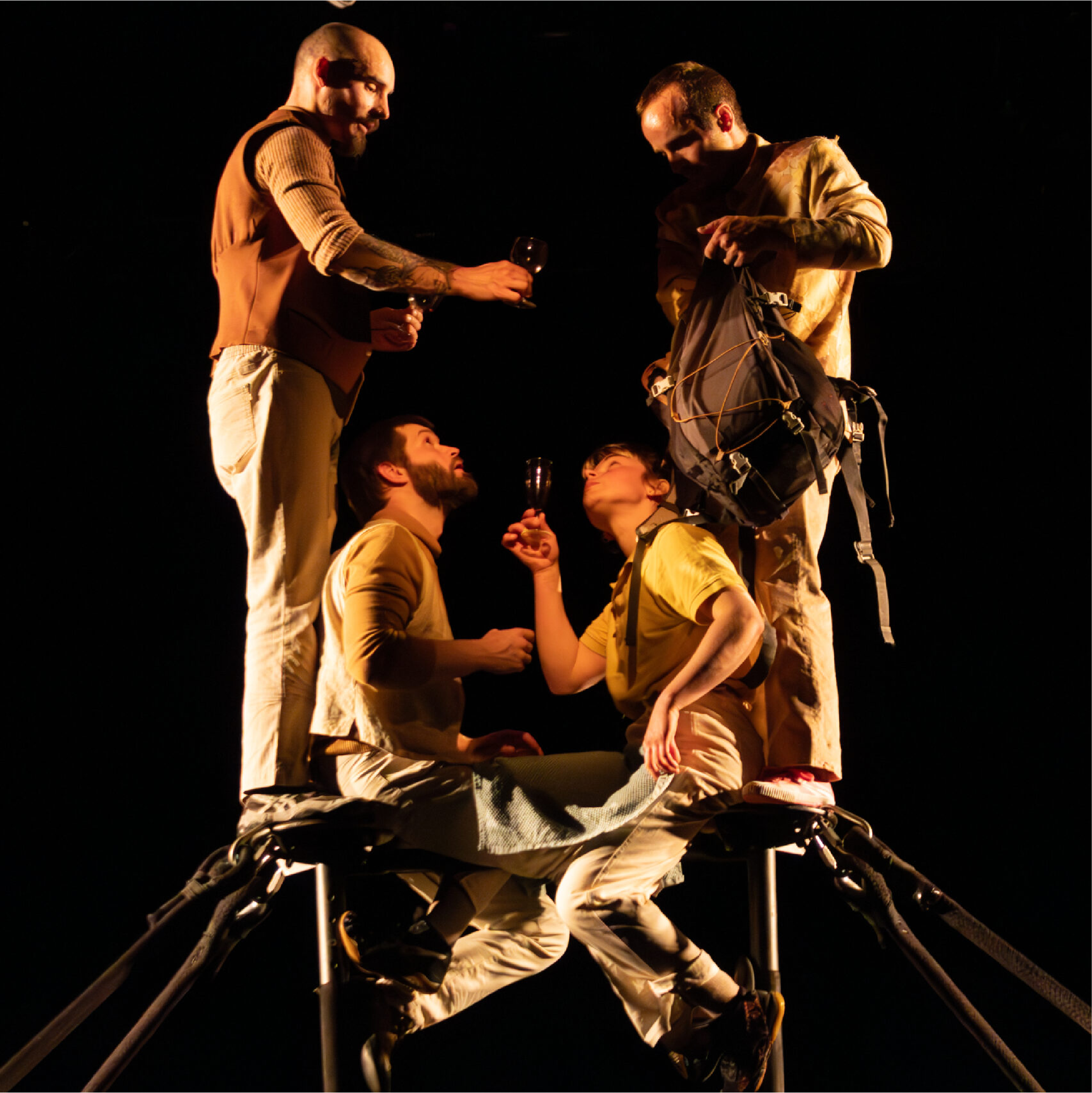 Quatre artistes construisent des cabanes éphémères autour de deux mâts, mêlant acrobaties, portés et équilibre. Un univers tendre et visuel, drôle et émouvant, qui émerveille petits et grands.
